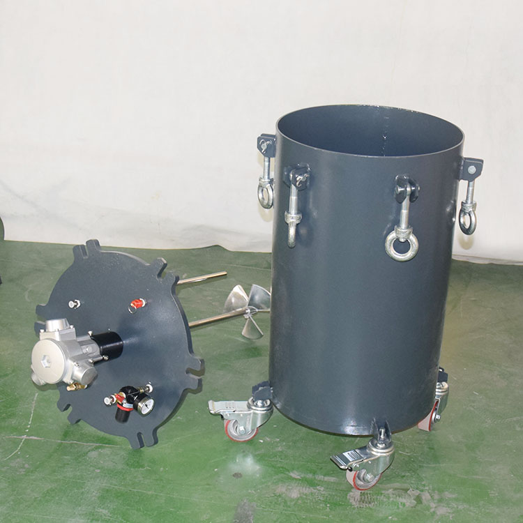 氣動壓力桶攪拌型,在標(biāo)準(zhǔn)壓力桶的基礎(chǔ)上,增加了氣動攪拌功能,同時又增加了4個萬向輪子。